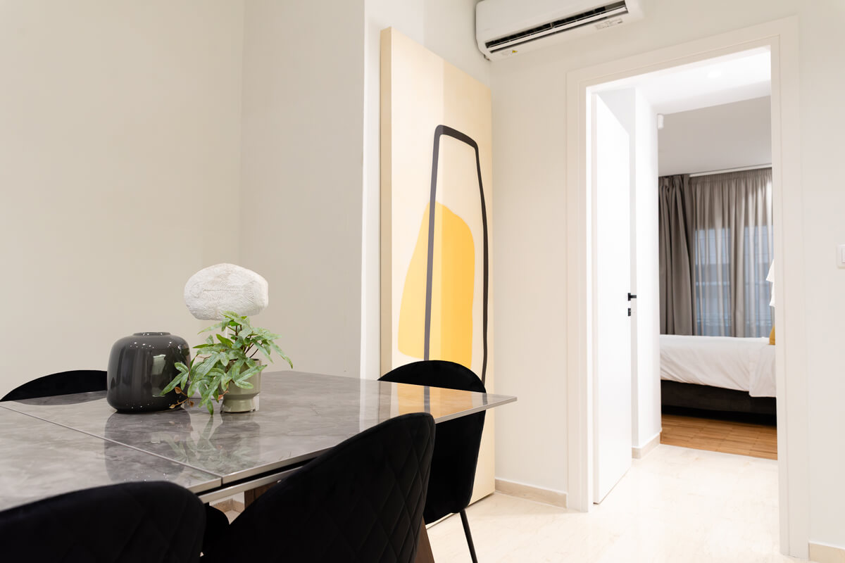 Welcome to City C Prime Residence, a modern accommodation in the center of Athens. The accommodation features two comfortable and elegant suites with modern design, spacious rooms, and earth-toned décor.