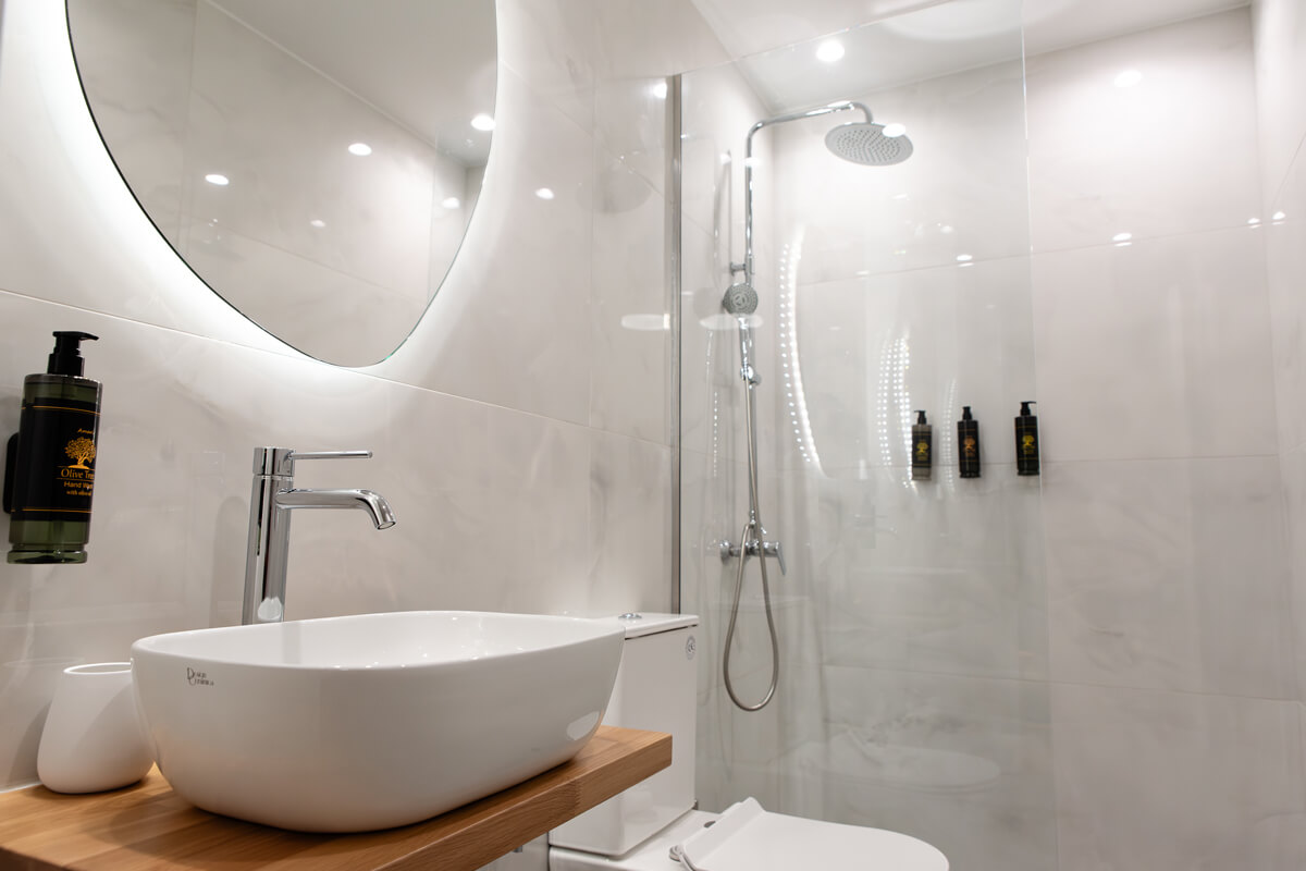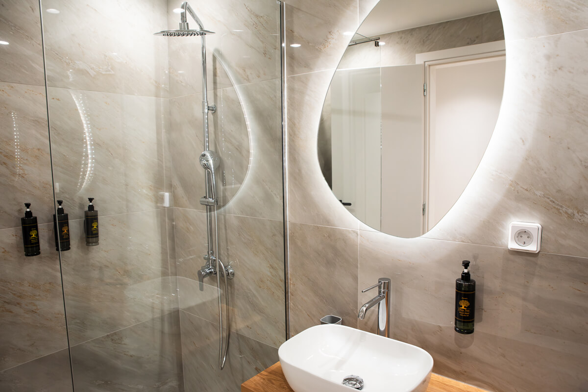 Each bright and spacious suite is designed to offer ultimate comfort and functionality. It features three separate bedrooms and three modern bathrooms with showers and complimentary toiletries, ensuring privacy and convenience for all guests. Relax in the comfortable living room with its cozy sofas after a day of exploring the city. The fully equipped kitchen includes a dining table, refrigerator, oven, stovetop, dishwasher, coffee maker, electric kettle, and toaster—everything you need to easily prepare your meals. Each suite also offers a balcony with city views and free Wi-Fi throughout. Accommodating up to 6 guests, the suites are the ideal choice for families, couples, or groups seeking comfort and a true home-away-from-home experience.